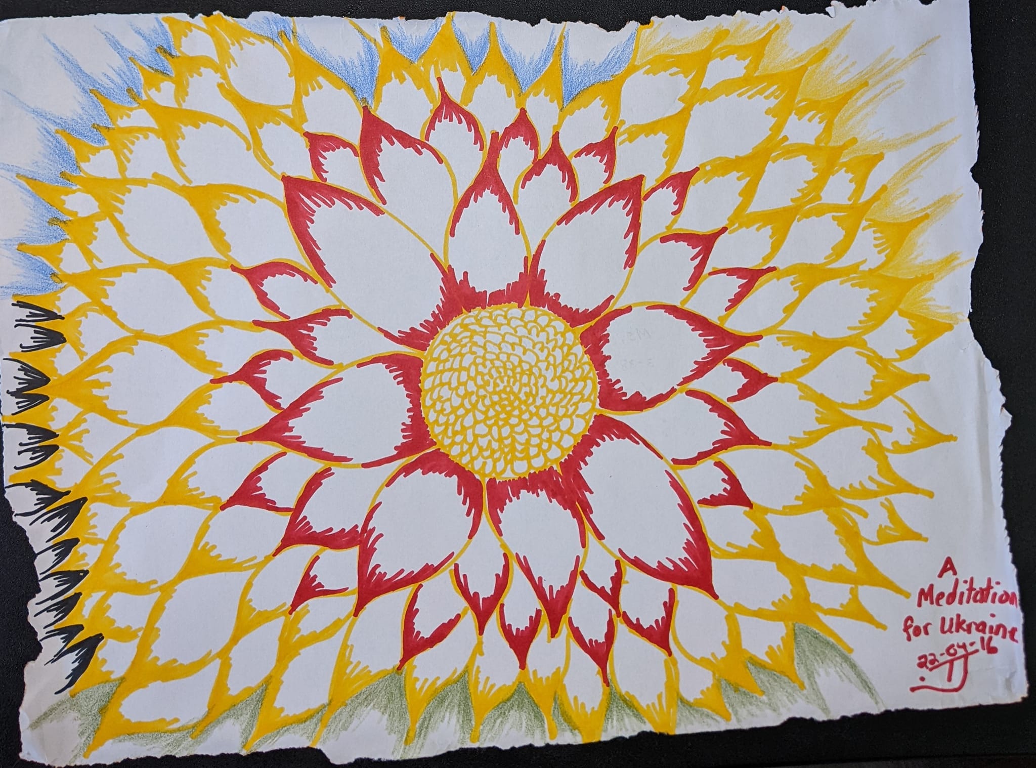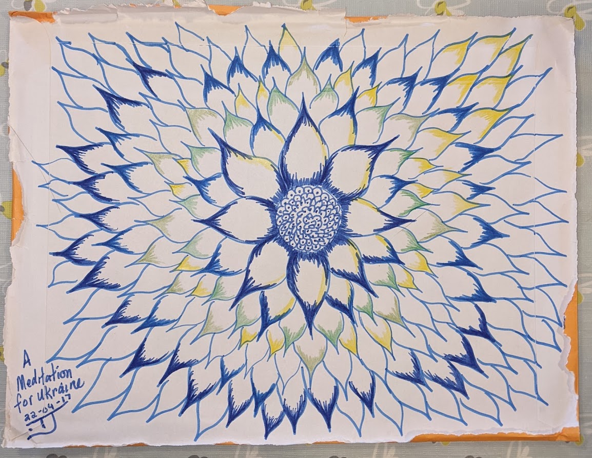 Art, art therapy, defense, doodles, drawing, history repeats itself, meditation, Stand with Ukraine, sunflowers, Ukraine, world peace